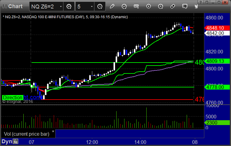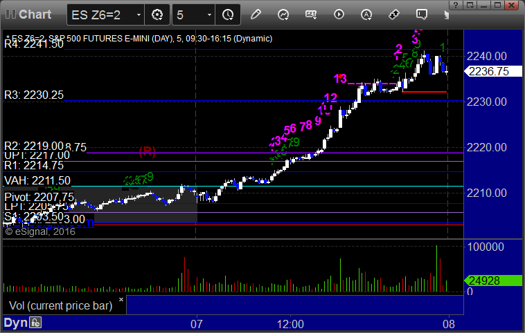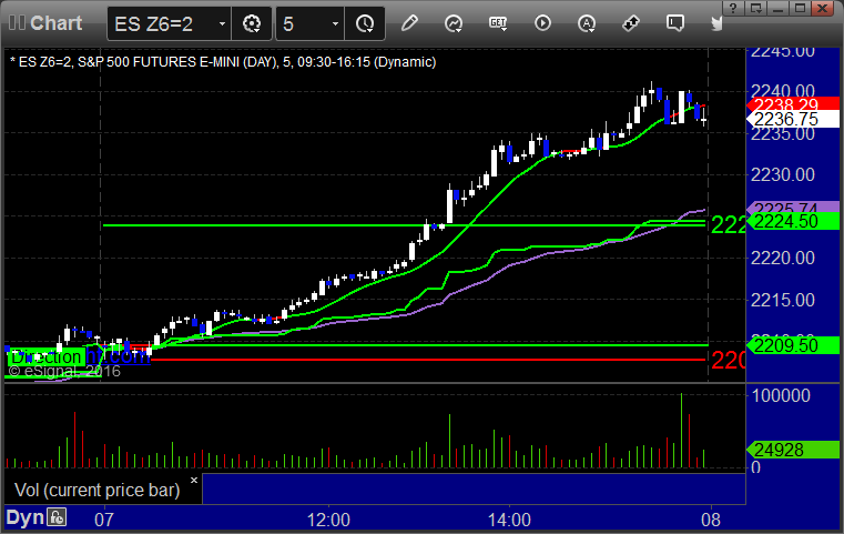 As usual, let’s start by taking a look at the ES and NQ with our market directional lines, VWAP, and Comber on the 5-minute chart from today’s session: