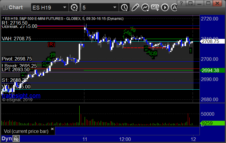 market directional lines, VWAP, and Comber on the 5-minute chart from