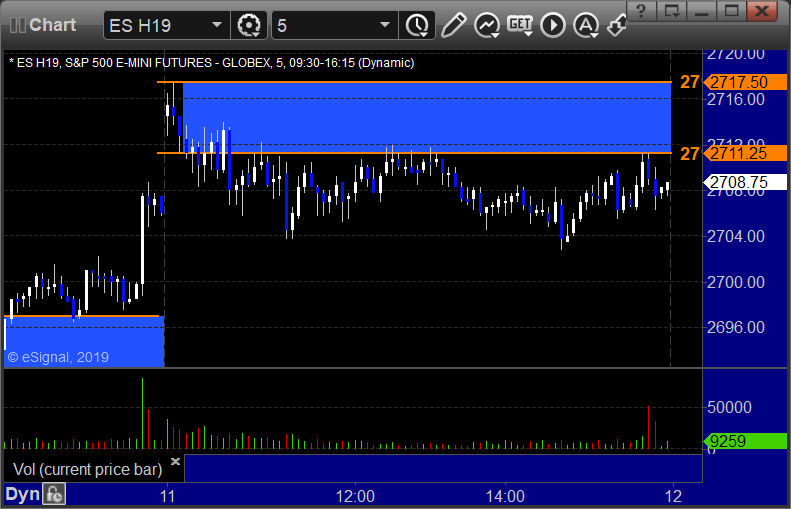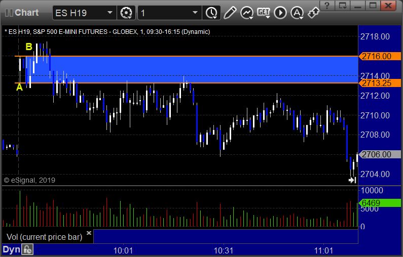 ES Opening Range Play triggered short at A and stopped, triggered long at B and stopped: