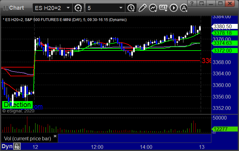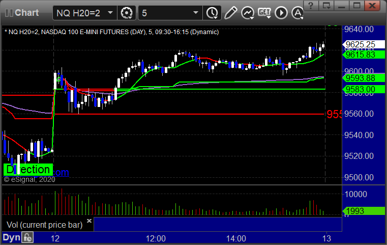 As usual, let’s start by taking a look at the ES and NQ with our market directional lines, VWAP, and Comber on the 5-minute chart from today’s session:
