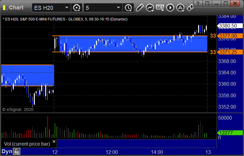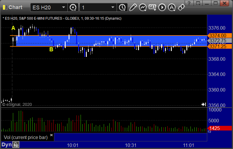 ES Opening Range Play triggered long at A and stopped, triggered long at B and stopped: