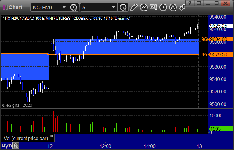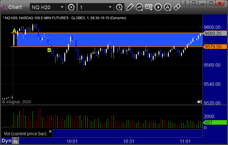 NQ Opening Range Play triggered long and short, but both too far out of range to take: