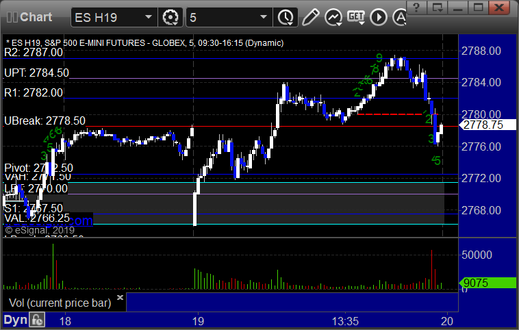 As usual, let’s start by taking a look at the ES and NQ with our market directional lines, VWAP, and Comber on the 5-minute chart from today’s session: