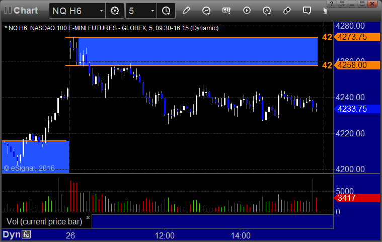 The markets gapped up and ultimately filled and closed about flat on 1.6 billion NASDAQ shares. Opening Range plays worked, see that section below.