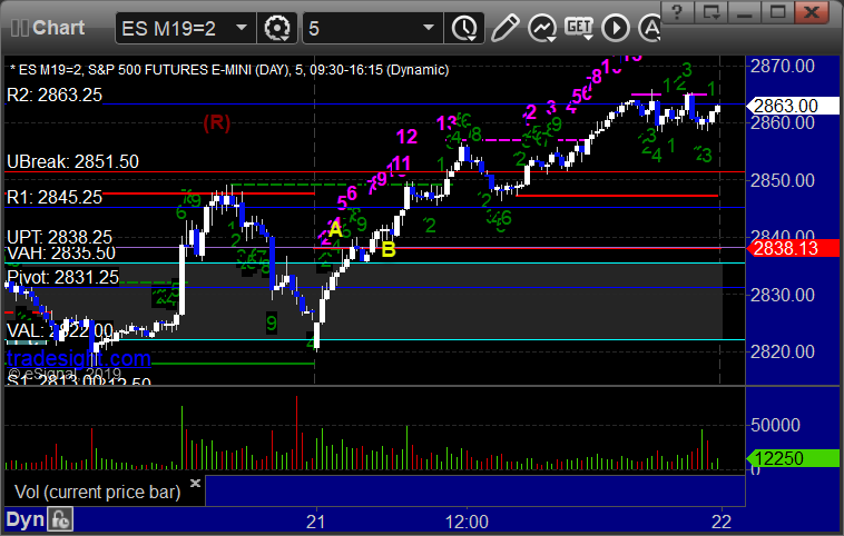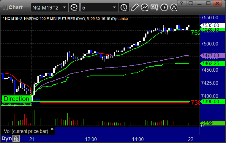 As usual, let’s start by taking a look at the ES and NQ with our market directional lines, VWAP, and Comber on the 5-minute chart from today’s session: