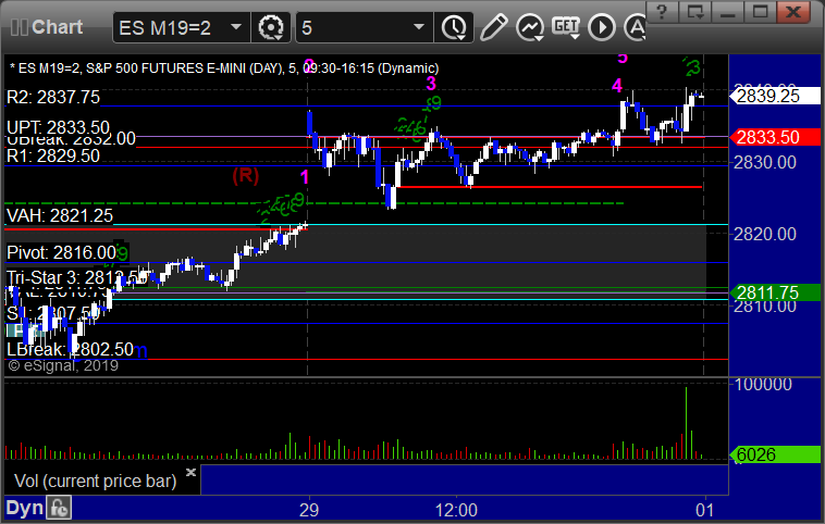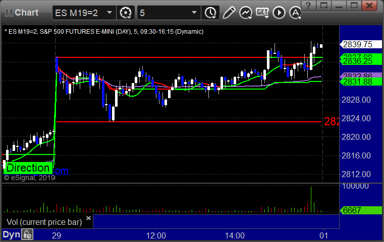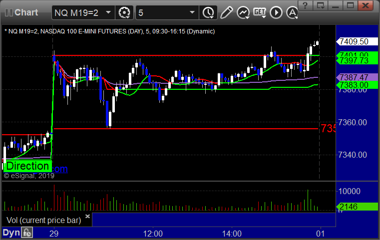 As usual, let’s start by taking a look at the ES and NQ with our market directional lines, VWAP, and Comber on the 5-minute chart from today’s session: