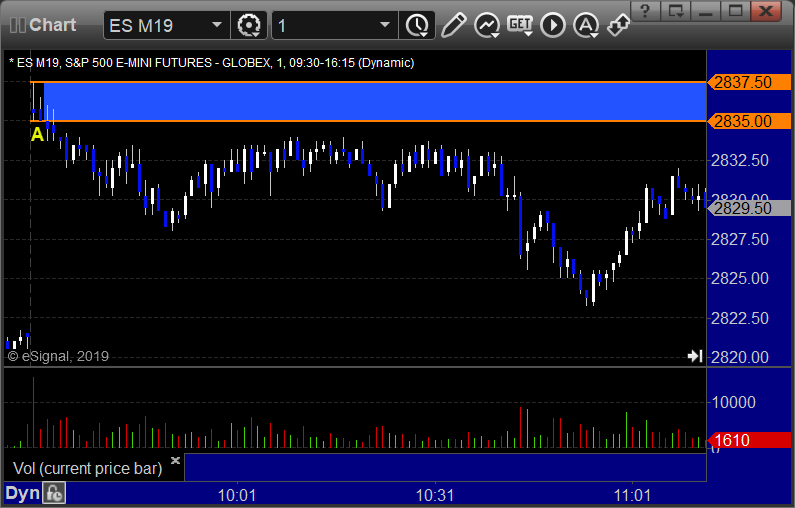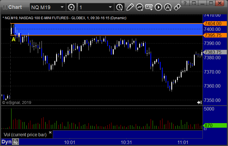 NQ Opening Range Play triggered short at A and worked enough for a partial: