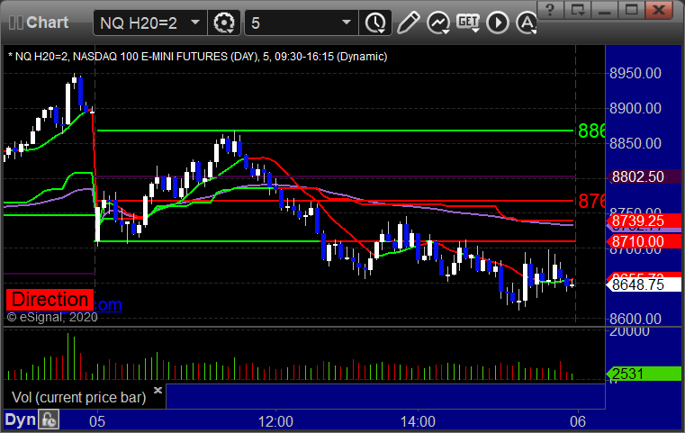 As usual, let’s start by taking a look at the ES and NQ with our market directional lines, VWAP, and Comber on the 5-minute chart from today’s session: