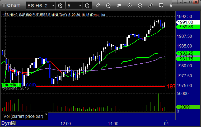 As usual, let’s start by taking a look at the ES and NQ with our market directional lines, VWAP, and Comber on the 5-minute chart from today’s session: