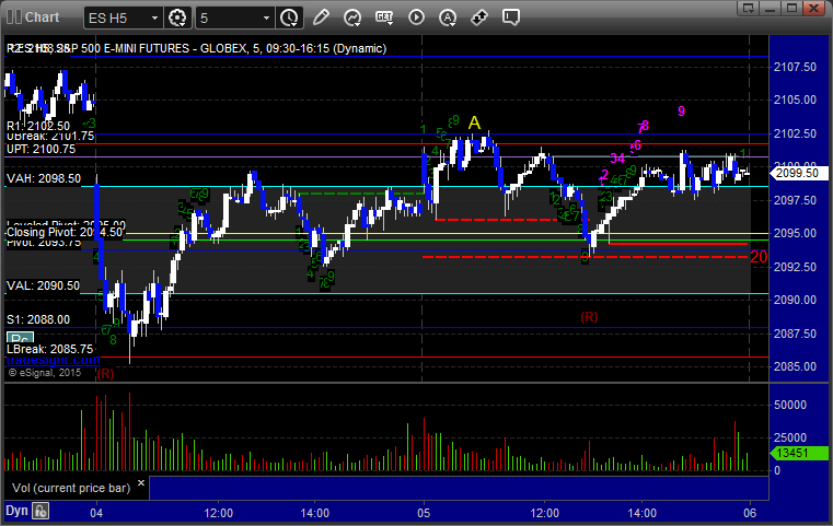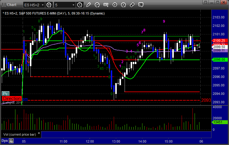 As usual, let’s start by taking a look at the ES and NQ with our market directional lines, VWAP, and Comber on the 5-minute chart from today’s session: