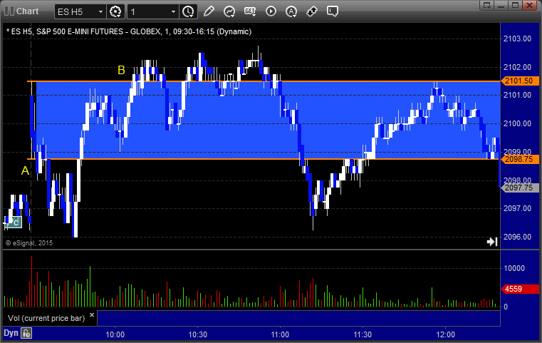 ES Opening Range Play triggered short at A and worked enough for a partial, triggered long at B and didn’t work: