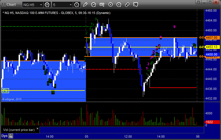 A much slower session than the last few days as volume dropped off quite a bit early, even though it ended up closing at 1.8 billion NASDAQ shares in the end. The markets filled their gaps early and stuck to the VWAP/midpoint area after.