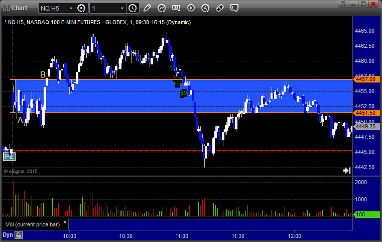 NQ Opening Range Play triggered short at A and didn’t work, triggered long at B and did:
