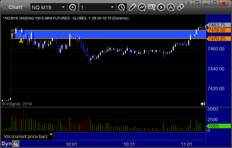 NQ Opening Range Play triggered short at A and worked enough for a partial: