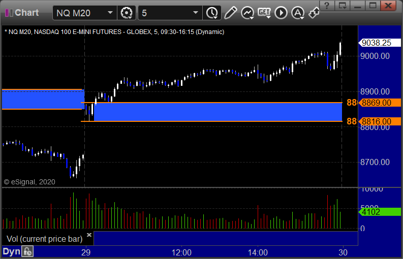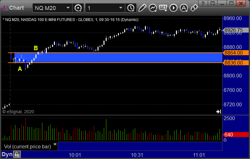 NQ Opening Range Play, both triggers were too far out of range to take: