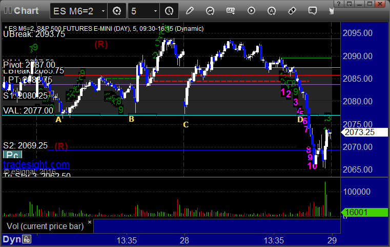 As usual, let’s start by taking a look at the ES and NQ with our market directional lines, VWAP, and Comber on the 5-minute chart from today’s session: