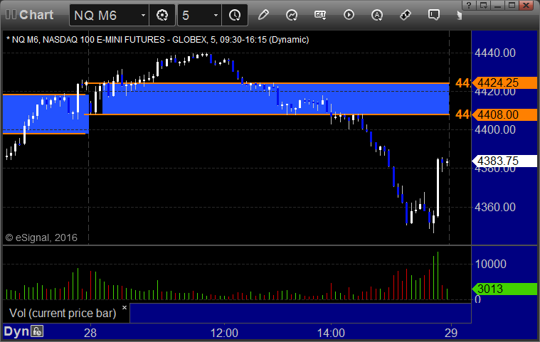 The markets gapped down, filled, and then rolled over late on 1.9 billion NASDAQ shares.