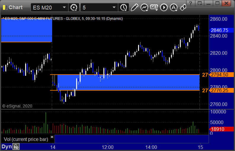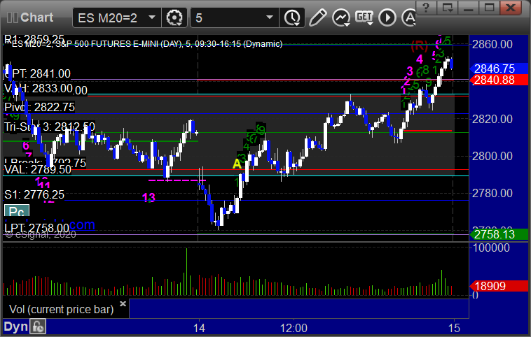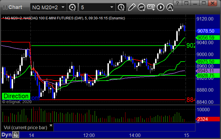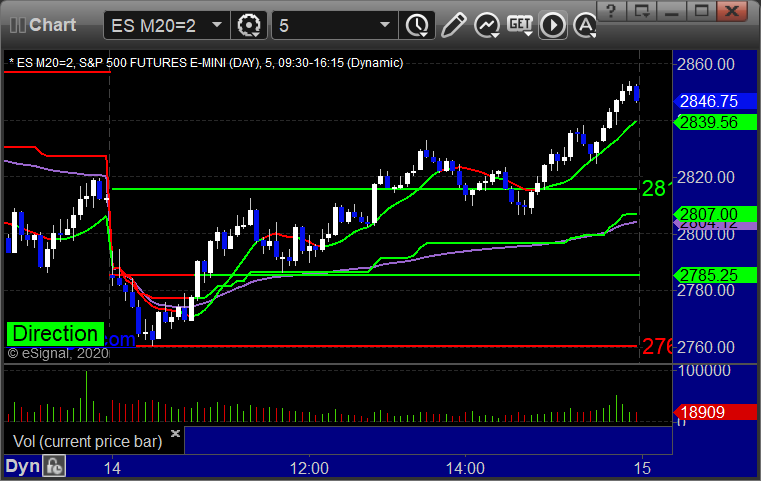 As usual, let’s start by taking a look at the ES and NQ with our market directional lines, VWAP, and Comber on the 5-minute chart from today’s session: