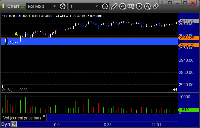 ES Opening Range Play triggered long at A and worked enough for a partial: