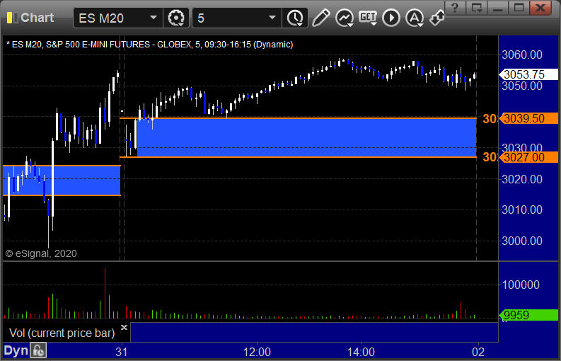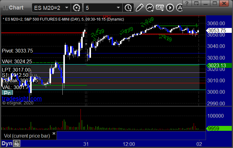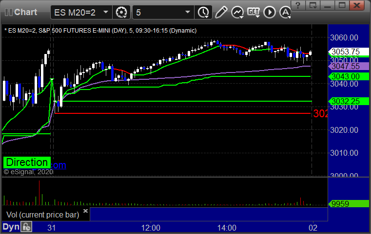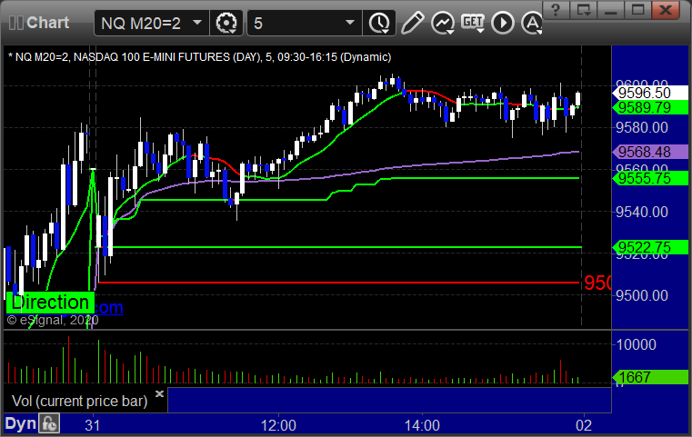 As usual, let’s start by taking a look at the ES and NQ with our market directional lines, VWAP, and Comber on the 5-minute chart from today’s session: