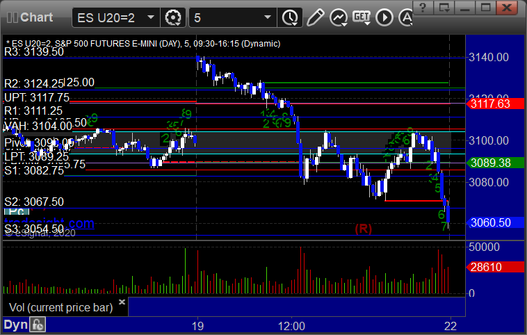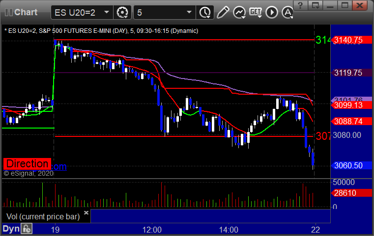 As usual, let’s start by taking a look at the ES and NQ with our market directional lines, VWAP, and Comber on the 5-minute chart from today’s session: