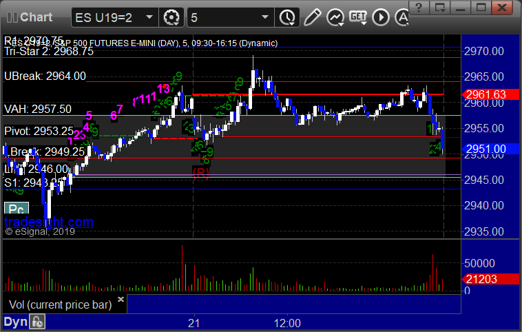 As usual, let’s start by taking a look at the ES and NQ with our market directional lines, VWAP, and Comber on the 5-minute chart from today’s session: