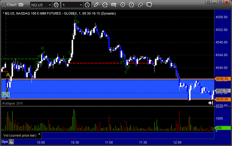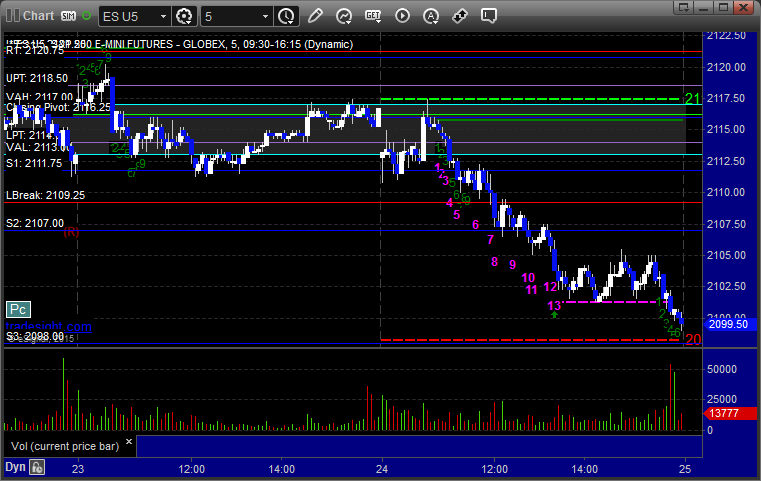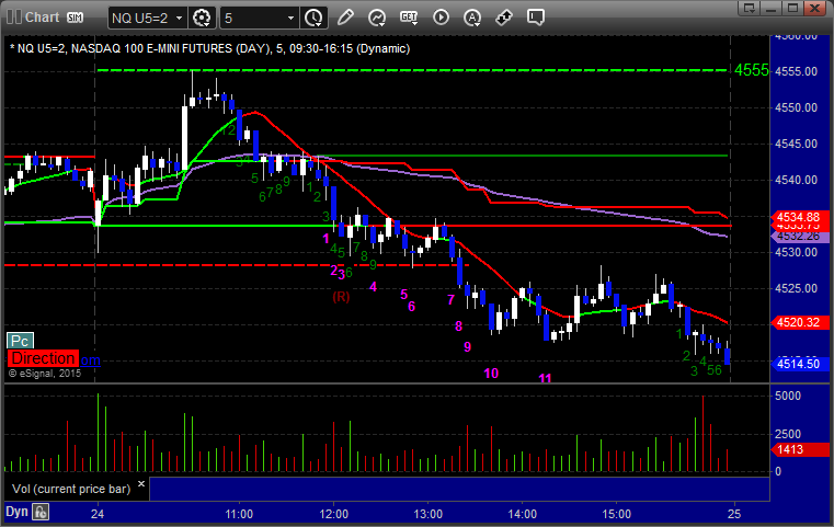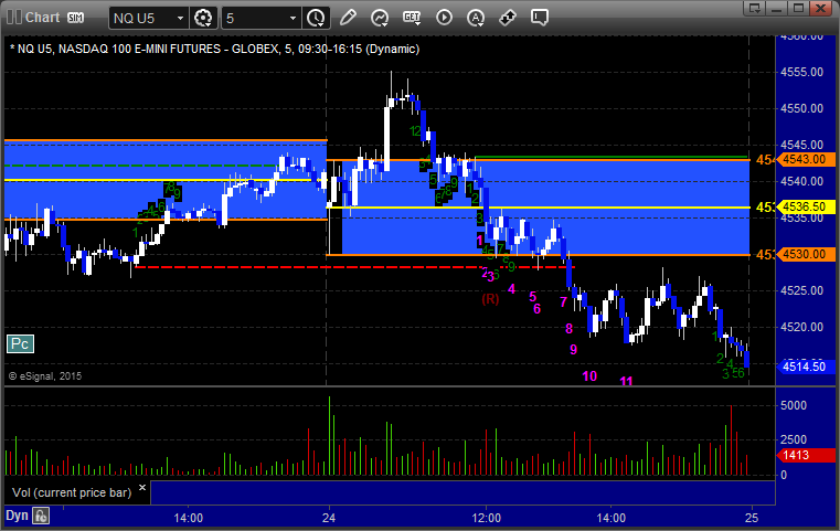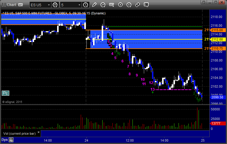 The markets gapped down a little and the ES took about an hour before it spiked up to fill. We finally got a downward move over lunch and the afternoon held near the lows on 1.45 billion NASDAQ shares.