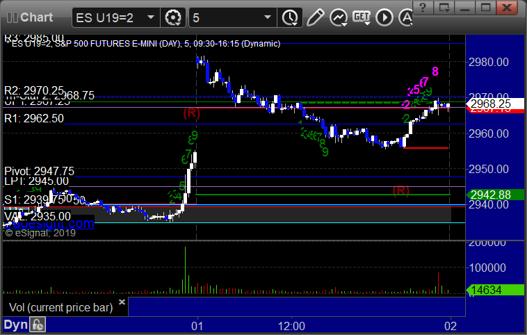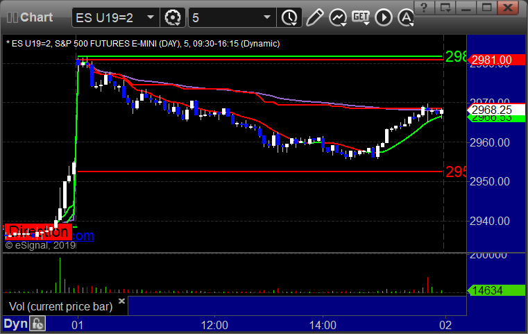 As usual, let’s start by taking a look at the ES and NQ with our market directional lines, VWAP, and Comber on the 5-minute chart from today’s session:
