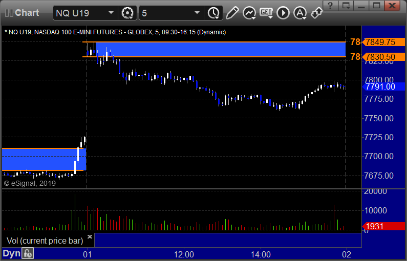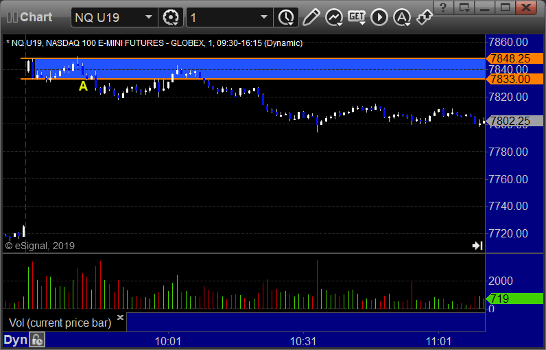 NQ Opening Range Play triggered short at A and worked enough for a partial: