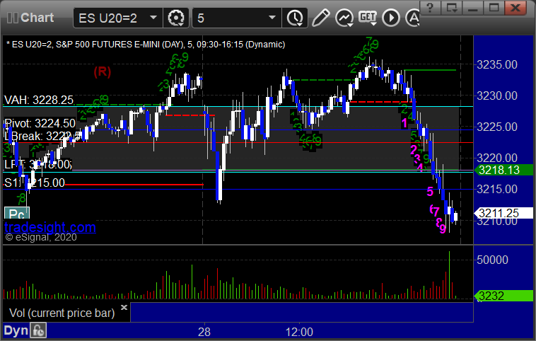 As usual, let’s start by taking a look at the ES and NQ with our market directional lines, VWAP, and Comber on the 5-minute chart from today’s session: