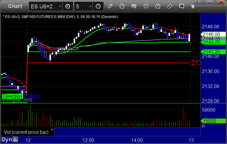 As usual, let’s start by taking a look at the ES and NQ with our market directional lines, VWAP, and Comber on the 5-minute chart from today’s session: