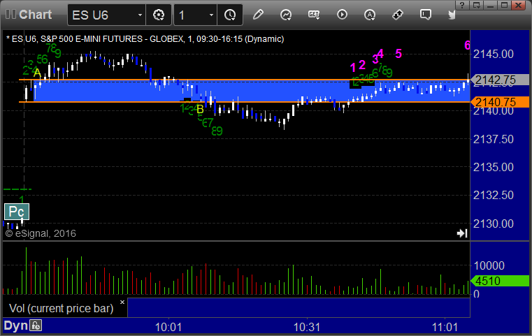 ES Opening Range Play triggered long at A and worked. Triggered short at B and worked:
