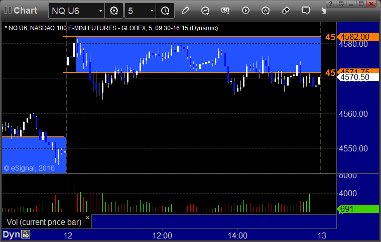 Just a reminder that we use half points for ticks on the NQ and not the quarter point measurement that the exchanges switched to in recent years. This allows us to use 6 ticks as a key target as we do on the other contracts. It also keeps the value of a tick at $10, closer to the value of a tick on the other contracts.