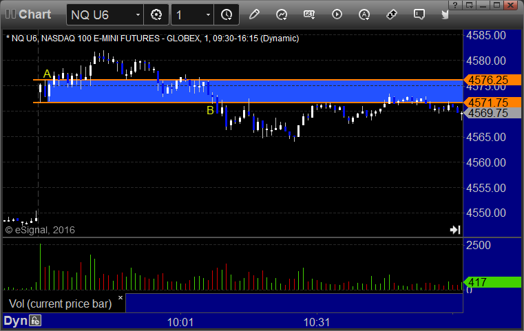 NQ Opening Range Play triggered long at A and worked. Triggered short at B and worked:
