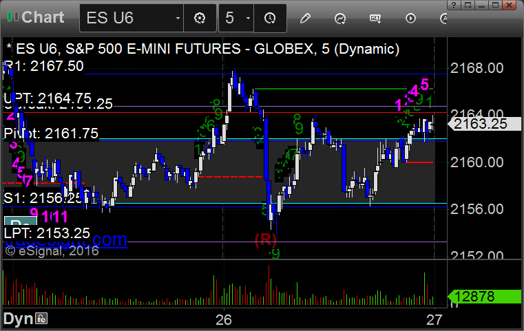 As usual, let’s start by taking a look at the ES and NQ with our market directional lines, VWAP, and Comber on the 5-minute chart from today’s session: