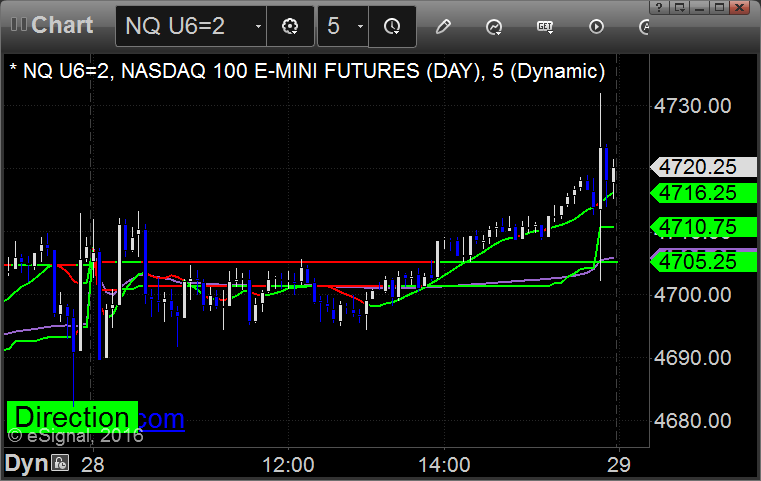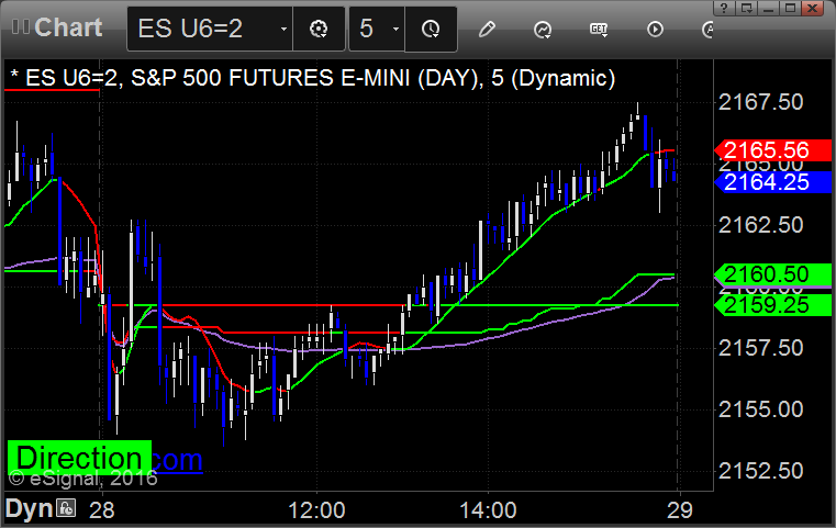 As usual, let’s start by taking a look at the ES and NQ with our market directional lines, VWAP, and Comber on the 5-minute chart from today’s session: