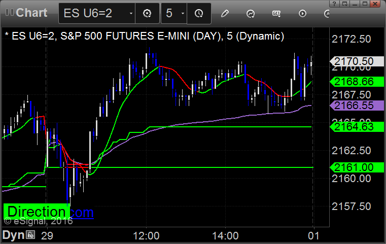 As usual, let’s start by taking a look at the ES and NQ with our market directional lines, VWAP, and Comber on the 5-minute chart from today’s session: