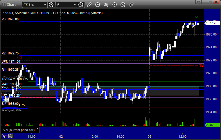 A half day ahead of the Fourth of July Holiday. We had one call to short the ES under UPT heading into the gap, but that didn’t trigger, so no triggers for the session. NASDAQ volume was only 900 million shares. Back to work Monday.