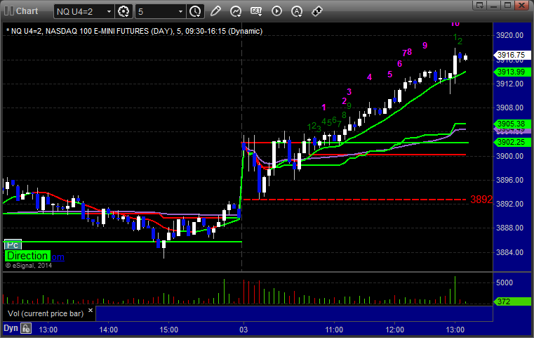As usual, let’s start by taking a look at the ES and NQ with our market directional lines, VWAP, and Comber on the 5-minute chart from today’s session: