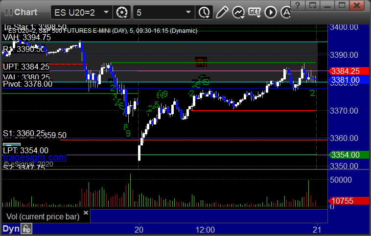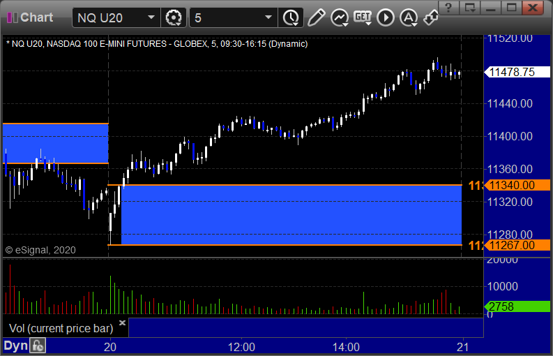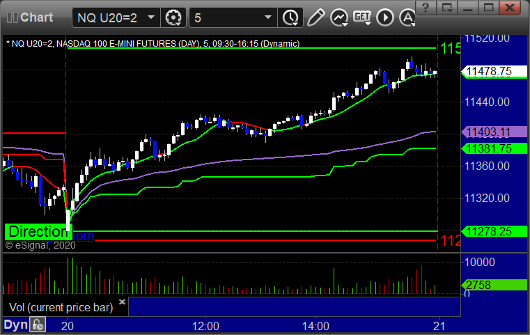 As usual, let’s start by taking a look at the ES and NQ with our market directional lines, VWAP, and Comber on the 5-minute chart from today’s session:
