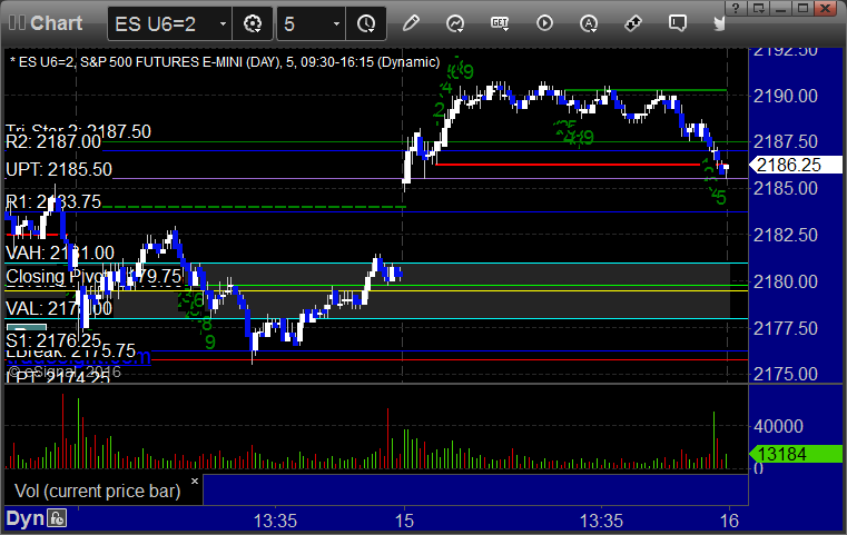 As usual, let’s start by taking a look at the ES and NQ with our market directional lines, VWAP, and Comber on the 5-minute chart from today’s session: