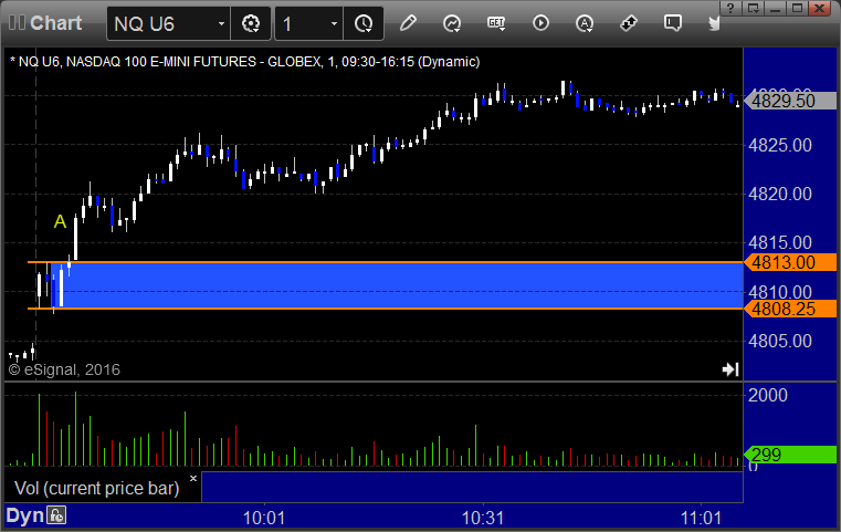 NQ Opening Range Play triggered long at A and worked: