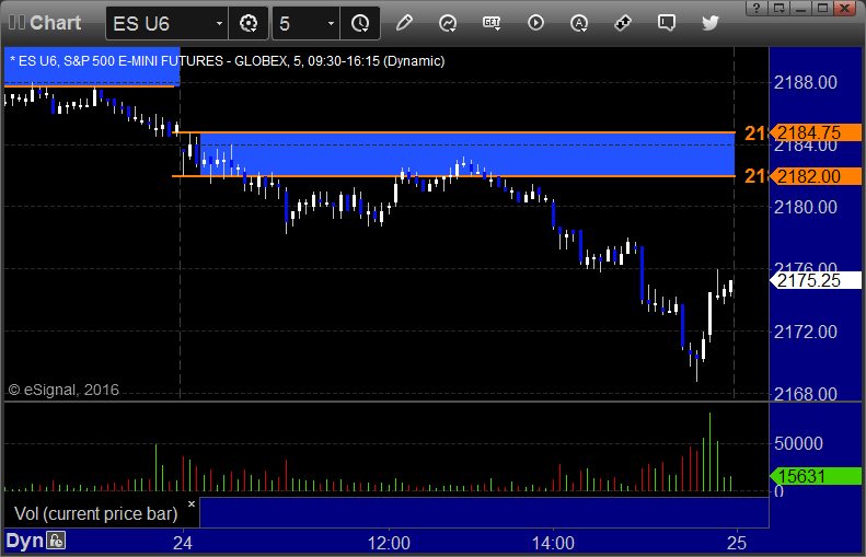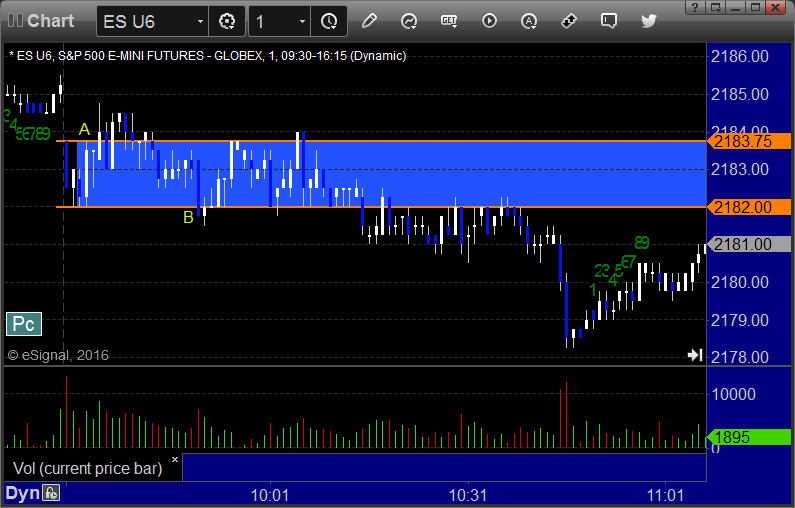 ES Opening Range Play triggered long at A and stopped, triggered short at B and stopped: