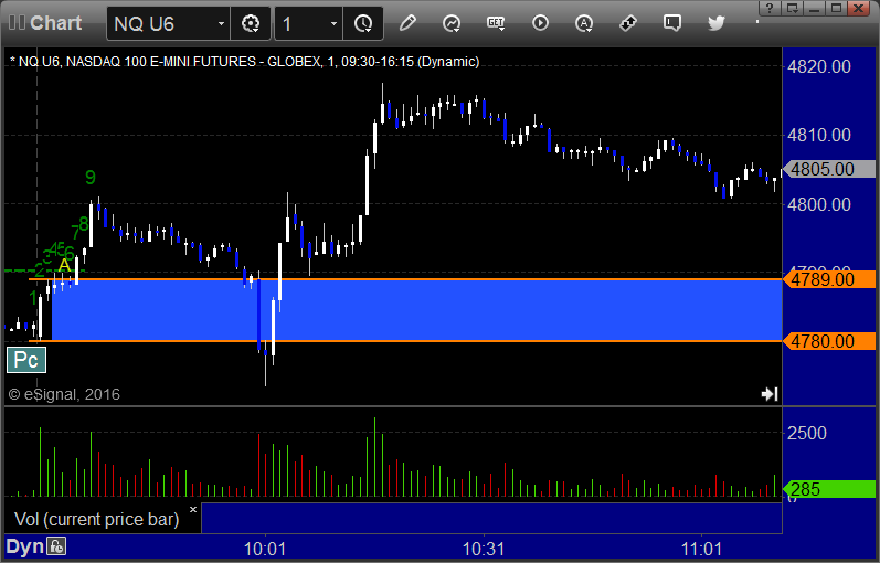NQ Opening Range Play triggered long at A and worked, I did not take the short: