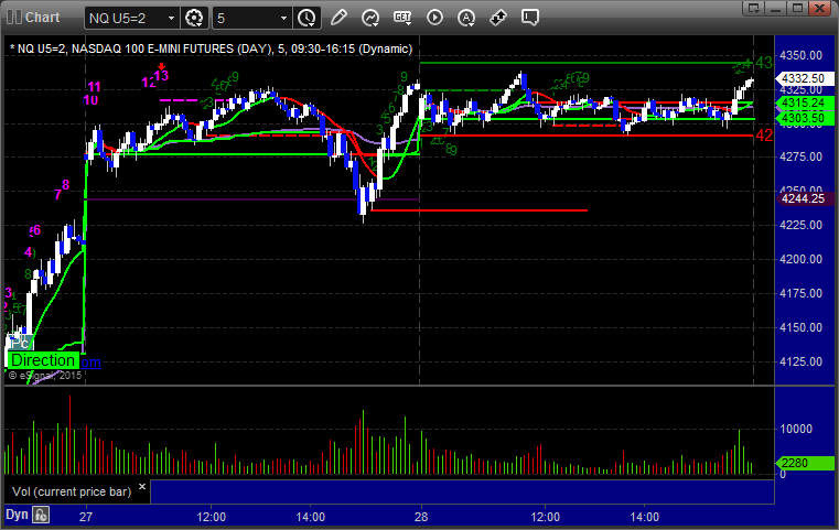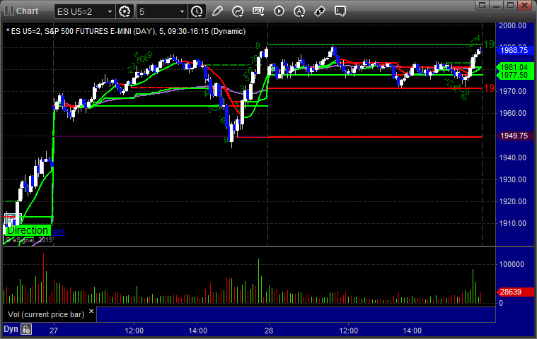 As usual, let’s start by taking a look at the ES and NQ with our market directional lines, VWAP, and Comber on the 5-minute chart from today’s session:
