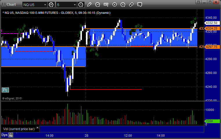 I thought we’d get some excitement in the back end of the day and I waited around for it, but in the end, it was as flat as the market was a few weeks ago on 1.7 billion NASDAQ shares. We gapped down, filled, and stuck in a narrow range for the whole session. Opening range plays worked a little again.