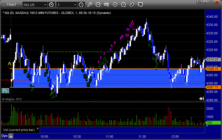 NQ Opening Range Play triggered long at A and worked enough for a partial: