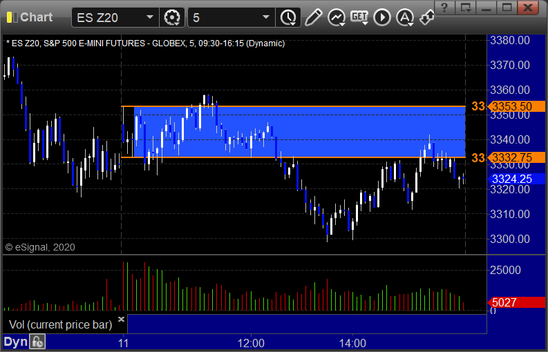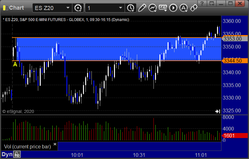 ES Opening Range Play triggered short at A but too far out of range to take:
