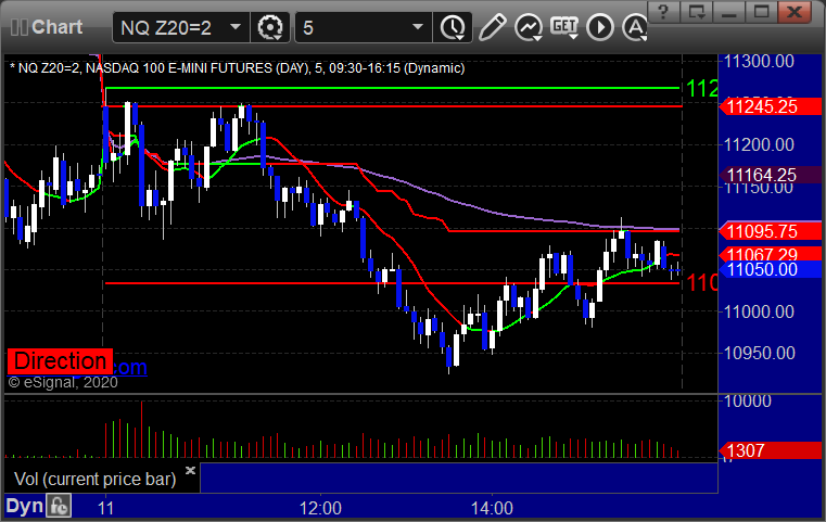 As usual, let’s start by taking a look at the ES and NQ with our market directional lines, VWAP, and Comber on the 5-minute chart from today’s session: