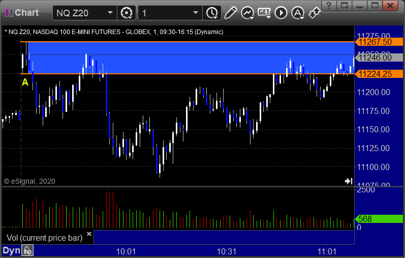 NQ Opening Range Play triggered short at A but too far out of range to take: